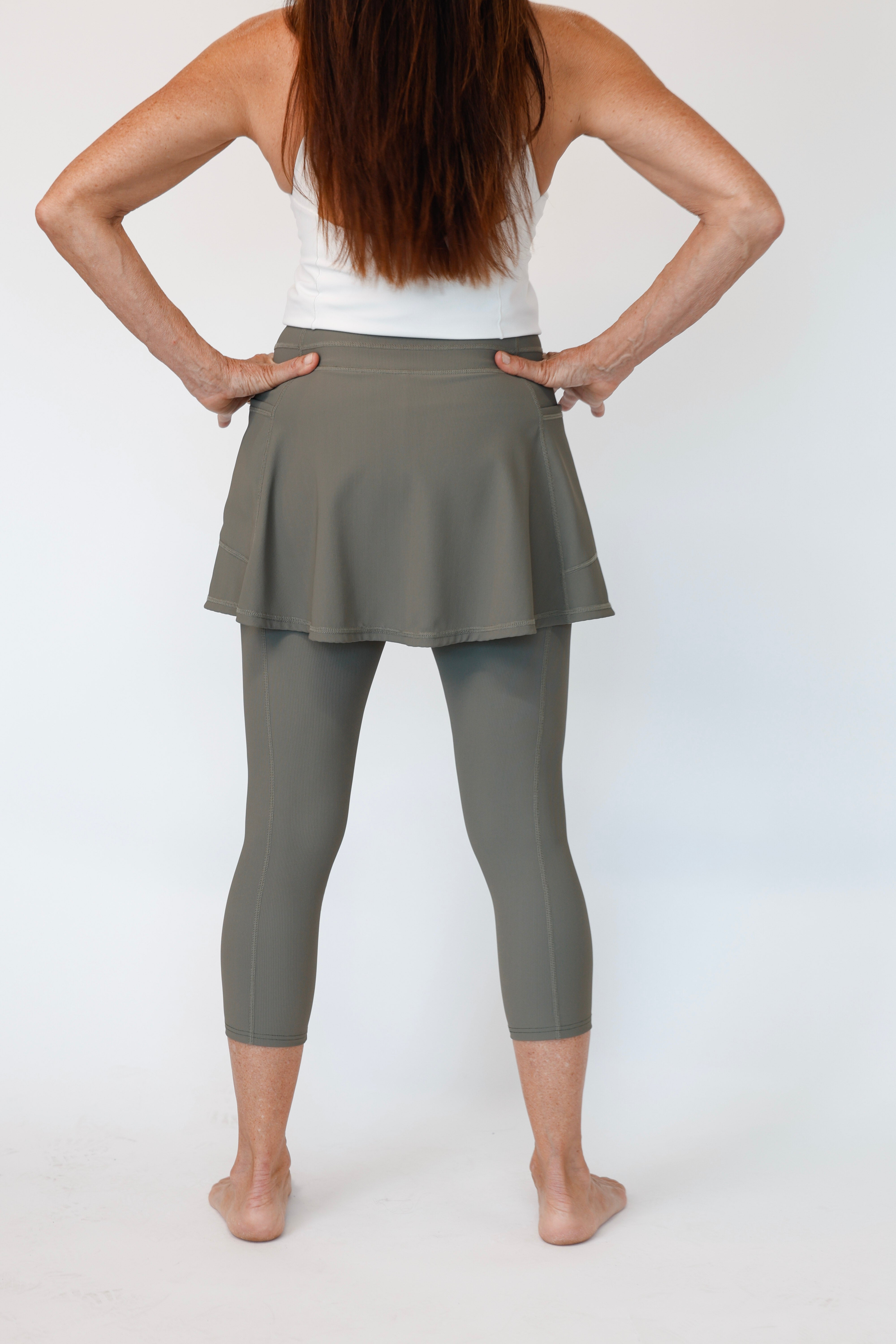 The Flare Skirted Legging – Olive Khaki Ribbed